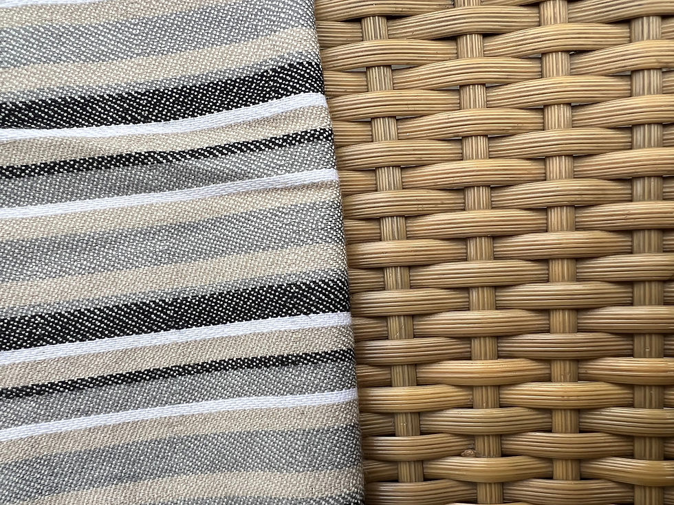 A research and experimental weaving project using an industrial loom. I researched the Sambalpuri Ikat sarees that come from India, and drew inspiration from it in terms of color ratios and the rhythm of repeating the stripes